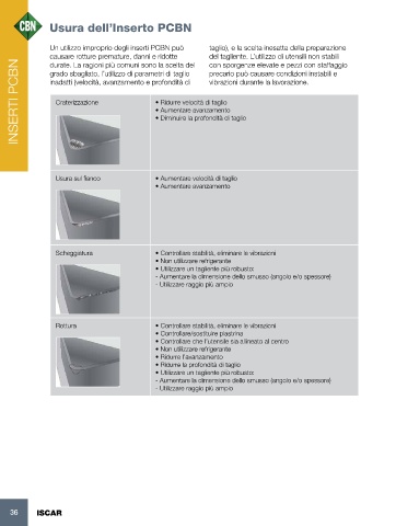 INSERTI PCBN  Un utilizzo improprio degli inserti PCBN può        taglio), e la scelta inesatta della preparazione
