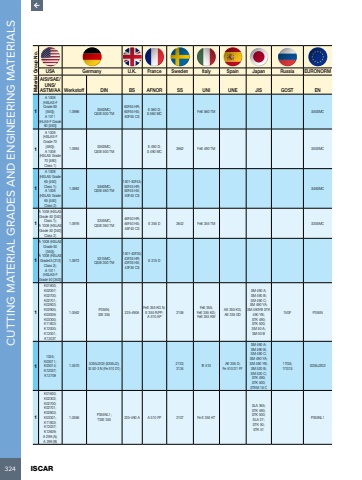 324 ISCAR CUTTING MATERIAL GRADES AND ENGINEERING MATERIALS Material Group No.USA Germany U.K. France Sweden Italy Spain Japan Russia EURONORMAISI/SAE/UNS/ASTM/AA Werkstoff DIN BS AFNOR SS UNI UNE JIS GOST EN1A 1008 (HSLAS-F Grade 80 [550]);A 1011 (HLAS-F Grade 80 [550])1.0986 S500MC;QStE 500 TM60F55 HR;60F55 HS;60F55 CSE 560 D;S 560 MC FeE 560 TM S500MC1A 1008 (HSLAS-F Grade 70 [480]);A 1008 (HSLAS Grade 70 [480] Class 1)1.0984 S500MC;QStE 500 TME 490 D;S 490 MC 2662 FeE 490 TM S500MC1A 1008 (HSLAS Grade 65 [450] Class 1);A 1008 (HSLAS Grade 65 [450] Class 2)1.0982 S460MC;QStE 460 TM1501-50F45;50F45 HR;50F45 HS;50F45 CSS460MC1A 1008 (HSLAS Grade 50 [340] Class 1);A 1008 (HSLAS Grade 50 [340] Class 2)1.0976 S355MC;QStE 360 TM46F40 HR;46F40 HS;46F40 CSE 355 D 2642 FeE 355 TM S355MC1A 1008 (HSLAS Grade 50 [340]);A 1008 (HSLAS Grade45 [310] Class 2);A 1011 (HSLAS-F Grade 50 [340])1.0972 S315MC;QStE 300 TM1501-40F30;43F35 HR;43F35 HS;43F35 CSE 315 D1K01600;K02007;K02700;K02701;K02803;K02900;K03009;K03300;K11803;K12000;K12001;K120371.0562 P355N;StE 355 225-490AFeE 355 KG N;E 355 R/FP;A 510 AP2106FeE 355;FeE 355 KG;FeE 355 KWAE 355 KG;AE 355 DDSM 490 A;SM 490 B;SM 490 C;SM 490 YA;SM 490YB STK 490 YB;STK 490;STK 500;SM 50 A;SM 50 B15GF P355N11024;K03011;K03014;K12037;K127091.0570 S355J2G3 (S355J2);St 52-3 N (Fe 510 D1)2132;2134 fE 510 AE 355 D;Fe 510 D1 FFSM 490 A;SM 490 B;SM 490 C;SM 490 YA;SM 490 YB;SM 520 B;SM 520 C;STK 490;STK 500;STKM 16 C17GS;17G1S S355J2G31K01600;K02302;K02700;K02701;K02803;K03301;K11803;K12037;K12609;A 299 (A);A 299 (B)1.0566 P355NL1;TStE 355 225-490 A A 510 FP 2107 Fe E 355 KTSLA 365;STK 490;STK 500;SLA 37;STK 50;STK 51P355NL1