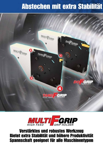 Abstechen mit extra Stabilität und höherer Produktivität 2 1 3 TWISTED 2-SIDED 4 HIGH FEED GRIP HOLDER Verstärktes und robustes Werkzeug Bietet extra Stabilität und höhere Produktivität Spannschaft geeignet für alle Maschinentypen