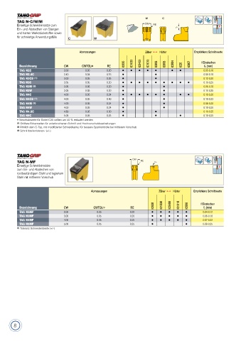 Abmessungen Zäher 1 Härter Empfohlene Schnittwerte