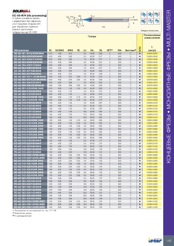 EC-A2 006-009/3C4R05H45 0.60 4.00 0.90 0.05 3.0 45.00 0.55 2 30.0 C • 0.0010-0.0020 КОНЦЕВЫЕ ФРЕЗЫ • МОНОЛИТНЫЕ ФРЕЗЫ • MULTI-MASTER