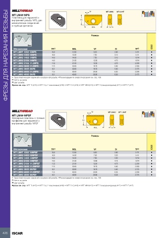 • Одна пластина для наружной и внутренней резьбы. •Рекомендации по скорости резания см. стр. 435
