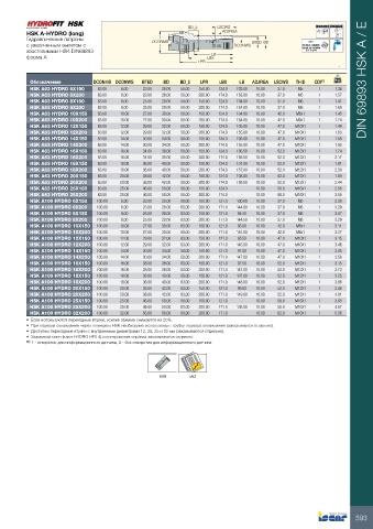 Обозначение DCONMS DCONWS BTED BD BD_2 LPR LBX LB ADJRGA LSCWS THID CDI (1) kg DIN 69893 HSK A / E