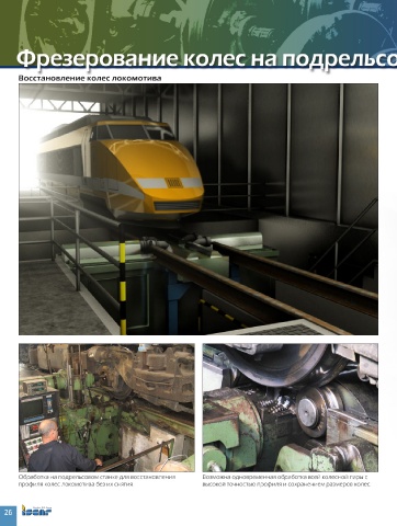 Обработка на подрельсовом станке для восстановления Возможна одновременная обработка всей колесной пары с