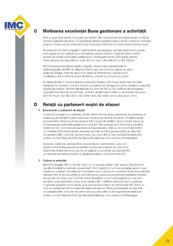 Membrii și angajații IMC nu vor oferi și nici nu vor accepta cadouri, plăți, favoruri, divertismente