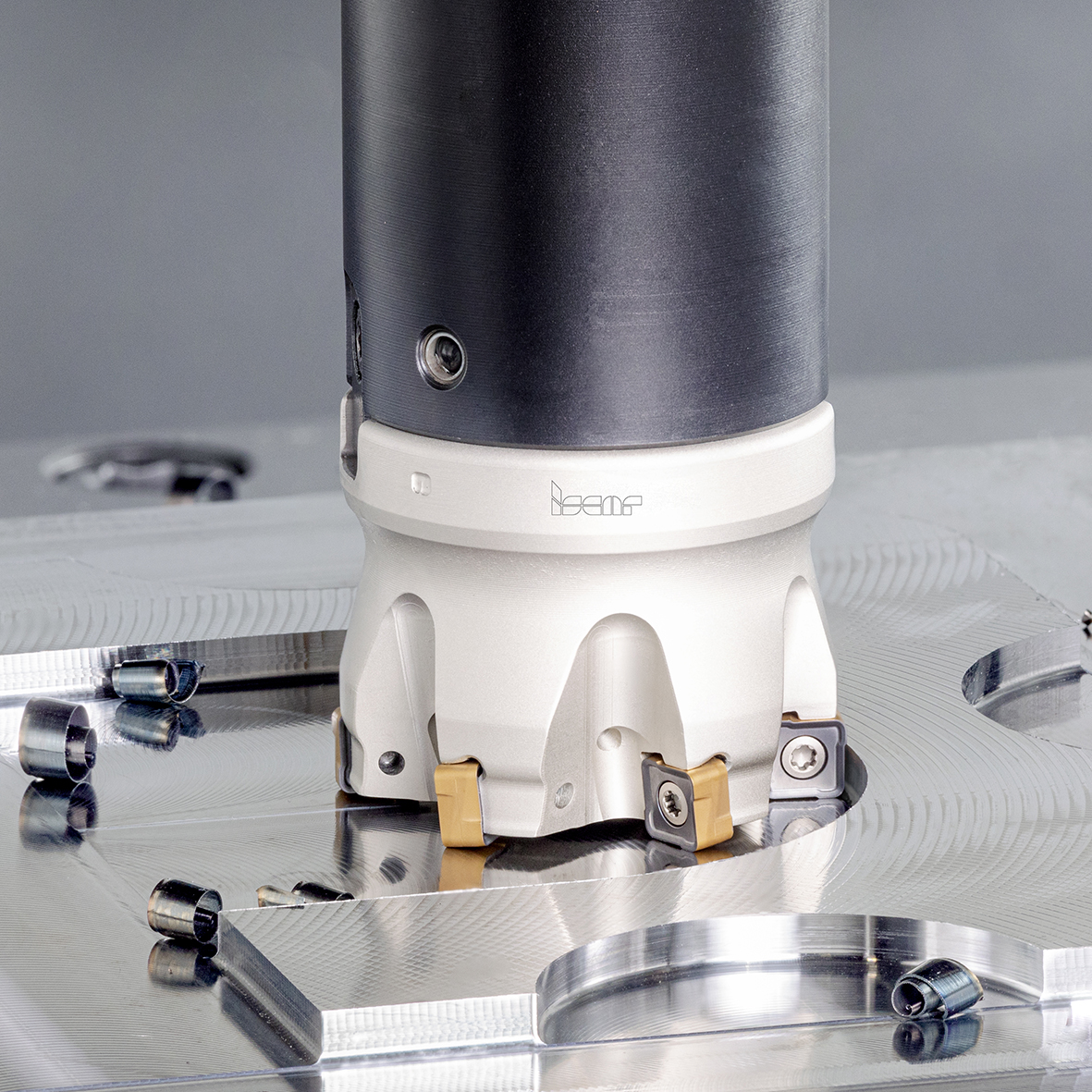 Speziell zum Schruppen und Vorschlichten komplexer Oberflächen findet sich in ISCARs NEOLOGIQ-Produktpalette auch ein doppelseitiger WSP-Rundfräser. Dieser ist besonders für den Einsatz im Werkzeug- und Formenbau, bei Teilen für die Energiebranche sowie für die Luft- und Raumfahrtindustrie geeignet. Das Plattensitzdesign mit der speziellen sphärischen Freiflächengeometrie sorgt für eine zuverlässige Klemmung und eine reibungslose Indexierung der WSP. Je nach Schnitttiefe lassen sich bis zu sechs Wendeschneidplatten pro Seite montieren – also zwölf insgesamt. Dazu muss die Klemmschraube nicht entfernt werden.