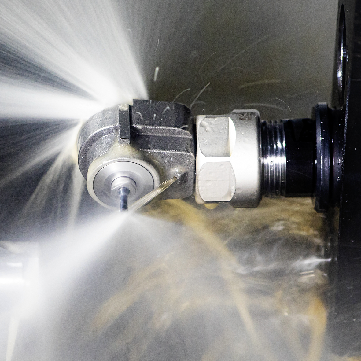 ISCAR SPINJET ist eine Familie an Kühlschmiermittel (KSS)-betriebenen Schnelllaufspindeln für Werkzeuge mit kleinem Durchmesser. Damit können Maschinen auf höhere Schnittgeschwindigkeiten aufgerüstet werden. Die Micro 90 ist für rotierende Miniaturwerkzeuge beim Fräsen, Bohren, Senken, Gewindefräsen, Anfasen, Entgraten und Gravieren vorgesehen. Sie besteht aus einem sechsteiligen Titan-Gussgehäuse. Die Drehzahlen reichen von 35.000 bis 53.000 Umdrehungen pro Minute, während die Hauptspindel der Maschine im Leerlauf bleibt.