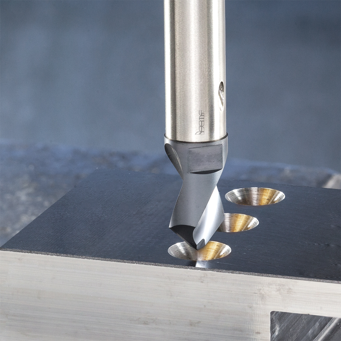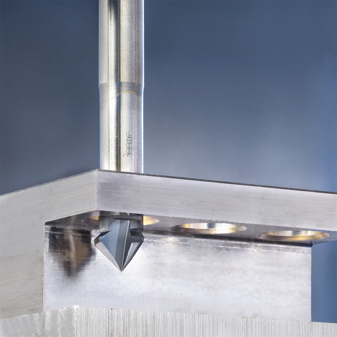 MM HCD two-flute heads stand tall above other MULTI-MASTER hole making products. These extremely versatile heads are made with various point angles - 60, 80, 90, 100 and 120 degrees which ensure a wide range of applications such as center drilling, spot drilling, hole chamfering and countersinking. They enable conical holes for countersunk screws, bolts, and rivets according to ISO/DIN/ANSI standards in solid material. If the workpiece is pre-drilled, countersinking efficiency can be improved by using multi-flute MM EDF heads that increase productivity in chamfering operations. When chamfering or deburring the back side of a hole, MULTI-MASTER double-sided chamfering heads are the solution.